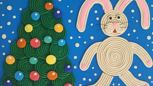 Лепим зайчика 🐰 и новогоднюю ёлку в жгутиковой технике пластилинографии. Пошаговая инструкция с фото для детей.