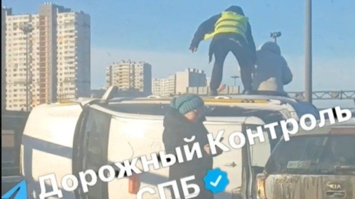 Такси перевернулось на КАД у съезда на Пулковское шоссе