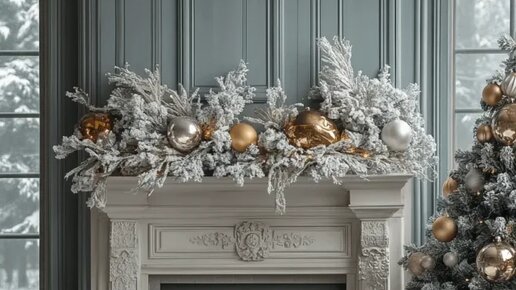 Создание праздничной атмосферы — это искусство, и в этом интерьере с камином и ёлкой можно найти идеальное сочетание стиля и уюта. Центральный элемент — камин, расположенный между двумя окнами, обрамляет гостиную и придаёт ей симметрию. Серые панели на стенах создают сдержанную, но утончённую атмосферу, делая комнату идеальным местом для зимних вечеров. Новогодняя ёлка, украшенная орнаментами в серебряных и золотых тонах, стоит справа от камина, у одного из окон. Выбор серебра и золота не только...