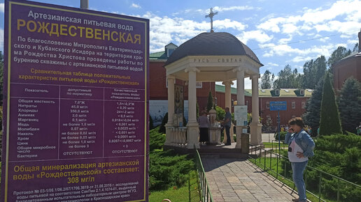 Актуально для жителей Юбилейного микрорайона и Немецкой деревни. Или для тех, кто их посещает регулярно по работе или иным делам. Состав воды указан на щите возле беседки: Обычно здесь всегда многолюдно, по этой причине висят таблички-предупреждения о том, что больше трех 5-литровых бутылей в одни руки не приветствуется набирать. Понятно дело, многие пренебрегают этим правилом, за этим никто не следит, но все же меру знать нужно и слишком много набирать воды не стоит, только для личного, домашнего расходования...