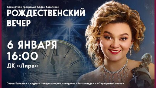 В преддверии светлого праздника Рождества Христова Дом культуры «Лира» поселка Пролетарский приглашает жителей и гостей города на особенный музыкальный вечер. 6 января в 16:00 они создадут атмосферу тепла, уюта и душевного торжества. Главной гостьей и украшением вечера станет лауреат международных конкурсов «Романсиада» и «Серебряный голос» Софья Ковалева. Её проникновенный, серебристый голос, отмеченный высокими наградами, завораживает слушателей и трогает самые тонкие струны души. В программе...
