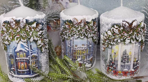 Новогодний декор свечей. Декупаж свечей - описание. Идеи по декорированию Рождественских свечей без декупажа.