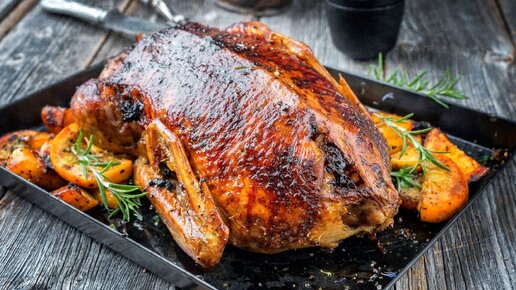 Сочная утка, запеченная с яблоками в рукаве в духовке