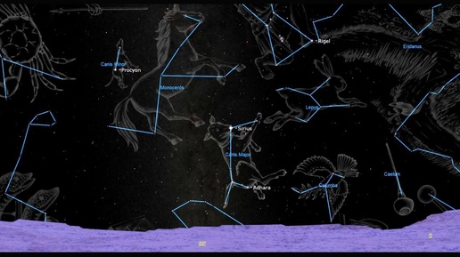 ) Сириус, самая яркая звезда в созвездии Большого Пса и на всём ночном небе, будет хорошо виден, когда в день католического Рождества к 19:30 по местному времени он поднимется над деревьями и крышами на юго-востоке. Сириус достигнет высшей точки в нижней части южного неба вскоре после полуночи по местному времени. Если вы идёте по тёмному дому посреди ночи, Сириус может привлечь ваше внимание при взгляде из окна, потому что в средних северных широтах он никогда не поднимается очень высоко...