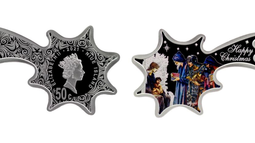 Ниуэ, самоуправляемое государственное образование, находящееся в свободной ассоциации с Новой Зеландией, выпустила в 2021 году монеты необычной формы - в виде Рождественской звезды. Они были отчеканены на Литовском монетном дворе. Всего было выпущено 5 тыс. экземпляров. На аверсе расположена королева Елизавета II, так как на 2021 год она была правящим монархом стран Содружества, в которое входит Новая Зеландия. Также значится номинал, год и имя королевы. Сама звезда украшена изящным орнаментом...