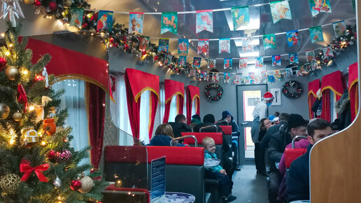 Приветствую Вас, Дорогие читатели, на канале "Helga Life". Сказочный поезд Деда Мороза заканчивает своё путешествие по стране, 5 января 2022 года, поезд прибыл на Киевский вокзал и пробыл там с 9.30 до 17.15. Осталось посетить ещё несколько городов и поезд прибудет в конечную точку своего маршрута - город Великий Устюг. Мне удалось попасть на перрон, и посмотреть как выглядит поезд и посетить несколько вагонов состава. Один из них - это нарядный вагон-ресторан. Речь в этой статье пойдёт именно про этот вагон...
