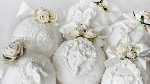 Пластиковые шары на елку 8см Шары загрунтованы и покрашены белой акриловой краской На каждом шаре есть декор из полимерной глины и молдов Все шары имеют разный декор, так они интереснее смотрятся на елке На каждом шаре также есть декор из элементов кружева, атласный бант И бумажные цветы из шелковой бумаги (Таиланд) Белые шары очень красиво смотрится, как гипсовые Нет в наличии / без повтора ______________________________ Мои другие источники, где я делюсь своим творчеством: Instagram: https://www...
