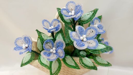 Приветствую вас друзья! Вы на канале Бисерное Искусства. С вами Виктория. Хочу поделиться в этом мастер-классе, простой техникой плетения, цветочков из бисера, и необычной расцветкой. Чтобы сплести вот такие цветочки из бисера, нам понадобятся следующие материалы: Бисер 12 размера 2 мм. в моём случае это китайский. для самих цветов я буду использовать два оттенка бисера: белый прозрачный и голубой полупрозрачный бисер. для серединки я буду использовать бусины белые диаметром 6мм . для зелёных листочков я буду использовать тоже два оттенка бисера: салатовый и тёмно-зелёный бисер...