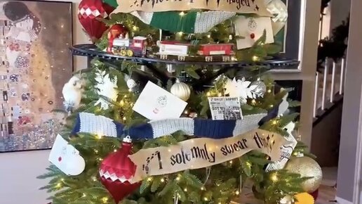 Движущийся «Хогвартс-экспресс» и игрушка с «Ежедневным пророком» : фанатка оформила новогоднюю елку в стиле «Гарри Поттера»