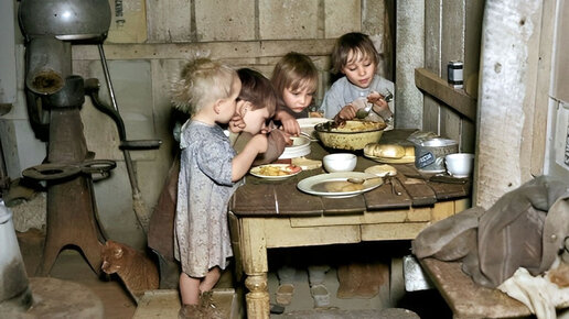 Рождественский ужин бедной семьи в 1936 году: картошка, капуста и пирог. Грех жаловаться на жизнь, когда видишь такие снимки