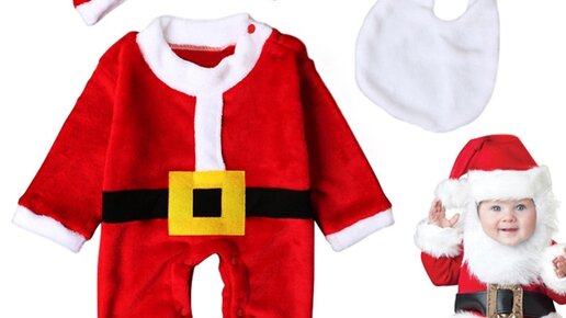 Новая зимняя одежда для новорожденных Рождественский костюм для девочки, Детский костюм Санта Клауса, модная шапка + комбинезон + имитация бороды, комплект из 3 предметов с Алиэкспресс - цена 20,43$, купить: https://is.gd/bCNBc7 Костюм санта клауса детский характеристики