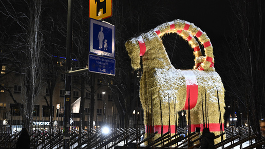 Рождественский козел пал жертвой непогоды. Традиционная инсталляция в Швеции вновь не выжила — на этот раз причиной стал ураган