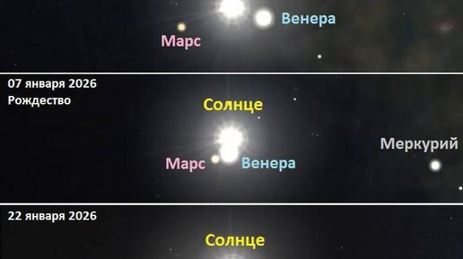 В ночь на Рождество, когда мир погружается в предвкушение чуда, небеса готовят нам поистине завораживающее зрелище. Три ярчайших небесных тела – Солнце, Венера и Марс – сольются в единую точку, создавая на небосводе образ, который многие уже окрестили "Вифлеемской звездой". Это редкое астрономическое явление, которое не только поражает своей красотой, но и несет в себе глубокий символизм, напоминая о событиях, изменивших ход истории. С декабря текущего года Венера и Марс участвуют в так называемом "солнечном параде планет"...