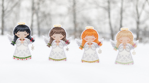 Здравствуйте. В декабре я поучаствовала в интересной активности - Люба Воденикова проводила бесплатный марафон по рисованию схем, и темой были выбраны рождественские ангелы и орнамент. В итоге я нарисовала очень милого ангелочка в четырех цветовых вариациях. Была мысль сделать что-то вроде сезонности, но в итоге я не придумала, как их украсить, и остались просто разные цвета. Так что сезонность получилась условная, практически по цветотипу: черные косички - зима, шатенка - весна, блондинка - лето, и рыжая - осень...