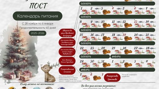 Рождественский пост — один из четырёх многодневных постов в православной традиции, установленный Церковью для духовного приготовления верующих к празднованию Рождества Христова. Его также называют Филипповым постом, поскольку он начинается на следующий день после памяти апостола Филиппа (27 ноября по новому стилю). Первые упоминания о подготовительном посте перед Рождеством относятся к концу IV — началу V века. Известно, что в Церкви Востока (в особенности в Александрии и Антиохии) существовала...