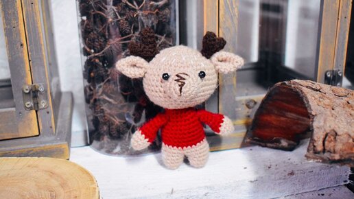 Я вяжу из остатков пряжи. Времени на создание такого изделия уходит совсем немного. А не совсем привычно оформленная мордочка такого олененка смотрится очень симпатчно. Нам понадобится: пряжа Alize Lanagold Fine бежевого, коричневого и бордового цвета; холлофайбер; крючок; бусины для глазок. ГОЛОВА-ТЕЛО-НОЖКИ: Начинаем бежевым цветом 1 ряд: 6 сбн в кольцо амигуруми; 2 ряд: 6 прибавок (12); 3 ряд: (1 сбн, пр)*6 (18); 4 ряд: (2 сбн, пр)*6 (24); 5 ряд: (3 сбн, пр)*6 (30); 6 ряд: (4 сбн, пр)*6 (36);...