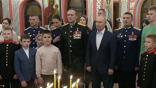 Путин встретил Рождество с военнослужащими и их семьями в подмосковном храме