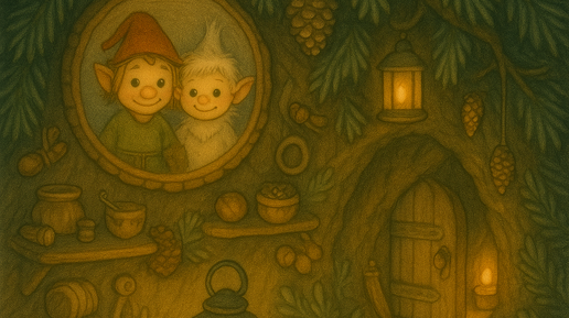 мудрее, темнее, и хранила в себе множество зимних историй. В её широком дупле жили два брата - маленьких тролля, Пекка и Пикку. Их домик “Еловая Нора” был очень уютным: маленький каменный очаг, деревянные полочки из коры, запасы ягод и главное — корзинка с маленькими стеклянными фонариками. Им было очень хорошо вдвоем. Но сегодня...