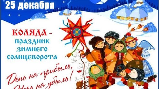 Коляда - древнейший праздник славянских народов, напрямую связанный с днём зимнего солнцестояния. Коляда - это Солнечное Рождество (Раждество, где Ра - свет, сияние), Рождение Солнца-Младенца. В славяно-арийской мифологии Коляда - новорожденное Солнце, то есть воплощение нового годового цикла. Коляда - поворот Солнца на весну - всегда праздновался в период Больших Велесовых Святок, проходивших с 24 декабря по 19 января. Встреча Коляды происходит, когда день "на воробьиный скок" прибыл, и начинает разгораться яркое Солнце, в момент зимнего солнцестояния...