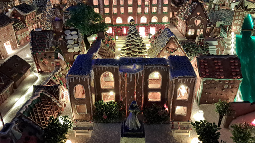 В Бергене продолжается старая добрая новогодняя традиция, впервые появившаяся в1991году. В декабре снова открылся рождественский пряничный городок. Самый большой в мире. Вся эта сказочная красота - выпечка из имбирного теста. Здесь воссозданы в миниатюре рождественские улицы "столицы дождей", Бергена. Около двух тысяч крошечных домиков в праздничной иллюминации изображают улицы этого города. Здесь можно полюбоваться на уменьшенные копии городских улиц, площадей, причалов, поездов, кораблей, паромов, церквей, даже и колесо обозрения увидеть...
