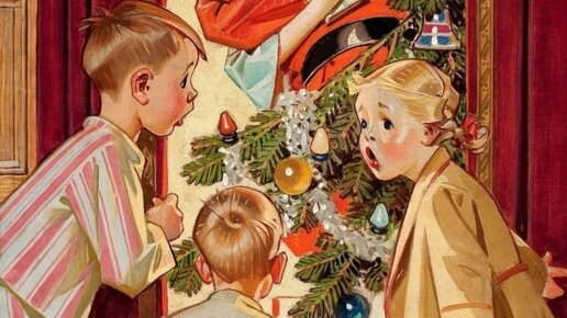 Сегодня красивая, очень трогательная публикация, посвящённая новогодним праздникам и Рождеству. Мы будем рассматривать очень красивые картины, посвященные самым долгожданным, светлвм и волшебным праздникам. Они создают тот самый настрой, рождают самое трепетное чувство - это чувство ожидания настоящего праздника, чуда. На этой иллюстрации три ребенка, которые увидели маму, которая обнимает и целует... самого Санта-Клауса! Откуда они знают друг друга?!! Удивление и недоумение в их позах выражениях лица...