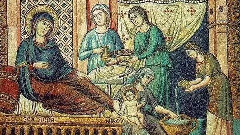 Величание Велича́ем Тя, Пресвята́я Де́во, и чтим святы́х Твои́х роди́телей, и всесла́вное сла́вим Рождество́ Твое́.
