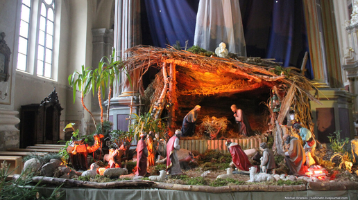 Латвия, Литва, Эстония - это страны, где главенствует католичество. И в различных соборах на католическое рождество мы можем видеть темы Рождества, которые, впрочем, похожи. В основном темы изображают пришествие волхвов к яслям Иисуса Практически везде мы можем видеть склонившуюся над яслями с младенцем Иисусом Марию Магдалину, которую освещает Вифлиемская звезда С волхвами рядом изображают пришедшими вместе с ними овец и баранов В Риге на площади у Домского собора можно увидеть живых...