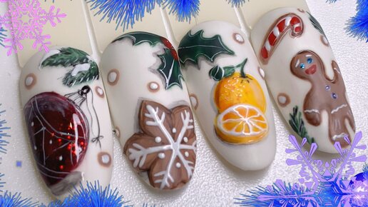 Всем привет. Я сняла для вас не просто видео, а целый видео урок, подробный мастер класс по росписи на ногтях. Рисовать мы будем конечно же дизайны ногтей на тему нового года. Нарисуем милого пряничного человечка, печеньки, сочные апельсинки и прекрасную ёлочную игрушку. На первый взгляд кажется что дизайны не просто выполнять, но с моим видео уроком у вас все получится. Рисовать мы будем на цветах гель лаков Fiore. В конце видео я покажу вам палитру этих замечательных цветов, среди которых есть у меня и любимчики...