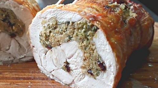 Готовлю мясной рулет из филе индейки со сложной начинкой на новогодний стол