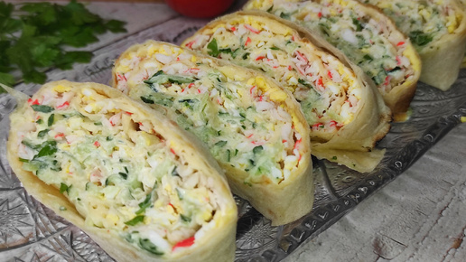 Рулет из лаваша с крабовыми палочками. Красивая и вкусная закуска на праздничный стол за 15 минут