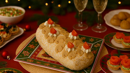 🎄 Праздничный рулет «Новогодний хит» — простые продукты, шикарный результат