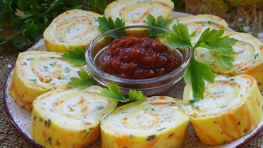 Омлетный рулет с сырной начинкой для праздничного стола и на закуску