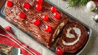 Этот нежный шоколадный рулет пропитан сиропом с кофейным вкусом и наполнен свежими взбитыми сливками для легкого и воздушного десерта, который станет изюминкой вашего праздничного стола. Завершенный кофейной шоколадной глазурью, приготовленной из несладких шоколадных квадратиков и ярко окрашенных засахаренных вишен. Обязательно попробуйте приготовить. Вот рецепт бисквитного рулета. Продукты необходимые для приготовления: