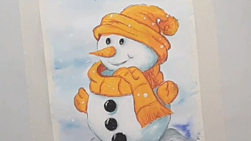 Всем привет! Меня зовут Екатерина, я художник-видеоблогер. Веду свой YouTube канал под названием "TessaArt" :) Сегодня мы будем рисовать новогоднего снеговика. Список материалов: С помощью карандаша наметьте силуэт снеговика (можно даже просто перевести его). Не давите на карандаш сильно, иначе он может некрасиво просвечивать через краски. Смочите лист (как при работе с акварелью) и хаотично нанесите синюю, бирюзовую краски. Это будет наш легкий фон. Смешайте на палитре белую краску с капелькой черной и бирюзовой...