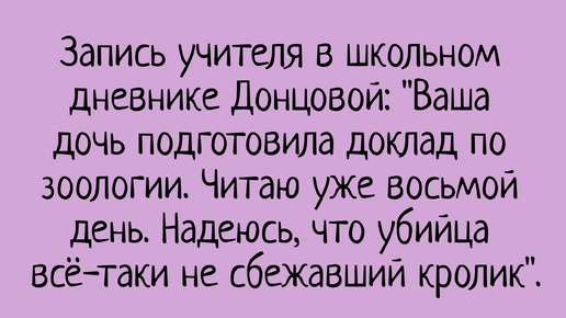 Для хорошего настроения небольшой сборник шуток и анекдотов . 1 Уже две недели маленький мальчик носит на крышу варенье и торты хитрому бомжу с вентилятором… 2 Внук на бумажке расписал ручку, а бабушка подумала, что это рецепт и с ним пошла в аптеку… 3 - Дорогая, у нас сегодня юбилей фирмы. Я приду вечером с Васей, посидим, отметим. - С этим идиотом и алкоголиком? - Тогда приду с Таней - нашей самой красивой и умной сотрудницей. - Ладно, приходи с Васей. 4 - Алло, диспетчер такси слушает. - Девушка, можно двенадцать такси к общежитию ткацкой фабрики? - Куда поедете? - Как куда? Обратно в часть...