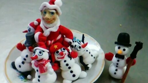Раскопала я очень старые фотки моих сахарных фигурок: Жалко, что качество фотографий очень плохое. Да и композицию никакую с фигурками я не сделала (как всегда). Просто куча персонажей🤔. Зато видно насколько брутальный получился дед мороз. ☺😆 Я уже и не помню почему я слепила его именно таким. Очень он мне нравится 😆. Симпатичный получился. Я бы такого ещё раз слепила. Прямо вот нет претензий ни к лепке ни к внешнему виду. А вот снеговичков бы я доработала🤔. Ну что это за глазки на выкате😳 Но зато, как персонажи они интересные...