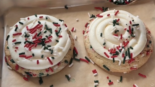 Идеально мягкое, праздничное и такое красочное! Это печенье — настоящий символ Рождества! Оно мягкое, нежное и буквально усыпано веселой разноцветной посыпкой, которая создает неповторимое праздничное настроение. А завершает картину облачко воздушной глазури из сливочного сыра. Готовьтесь наполнить дом уютом и ароматом праздника! --- Выход: около 15-18 печений Время подготовки: 20 минут Время выпекания: 10 минут --- Ингредиенты Для печенья: · 2 стакана + 2 ст. л. (255 г) муки · ¼ ч. л. разрыхлителя · ½ ч...