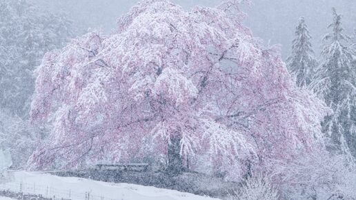 Редкое чудо - сакура в снегу или как говорят в Японии - «Скрытая сакура» (桜隠し, sakura kakushi). 桜の花に雪とは本当に珍しいですが、異常気象でしょうか?(さくらのはなにゆきとはほんとうにめずらしいですが、いじょうきしょうでしょうか?) – сакура – Сакура в снегу, это довольно редкое явление. И необычайно красивое. Существуют другие, довольно интересные высказывания японского языка про снежные явления и цветения по весне...