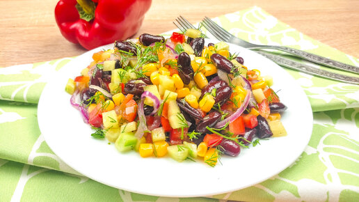 Сочный, хрустящий и невероятно вкусный САЛАТ ИЗ КРАСНОЙ ФАСОЛИ И БОЛГАРСКОГО ПЕРЦА😋 за 5 минут