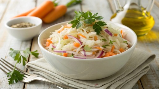 Салат из квашеной капусты — это простое и полезное блюдо, которое мы можем встретить в каждой славянской кухне. Это не только лакомство, но и источник витаминов, а также отличное дополнение к основным блюдам. Квашеная капуста очень полезна благодаря наличию пробиотиков и витаминов. А сочетание её с растительным маслом делает блюдо еще более вкусным и полезным. Шаг 1: Подготовьте ингредиенты. Квашеную капусту хорошо отожмите, если она слишком кислота. Лук нарежьте мелкими кубиками, а морковь натрите на крупной терке...