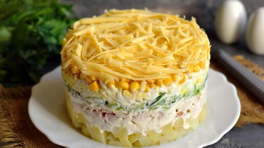 Слоеные салаты всегда красиво и аппетитно смотрятся на праздничных столах. Предлагаем новый и интересный рецепт несложного мясного салата. Копченая куриная грудка делает салат ароматным, придает ему легкий копченый вкус. Салат выглядит очень нежным, интересен в разрезе. Его смело можно подавать на стол без гарнира и мясных блюд. Ингредиенты: Приготовление: Подготовьте формовочное кольцо диаметром 20-22 см для выкладки слоев, установите его на плоскую тарелку. Клубни картофеля отварите в кожуре до готовности...