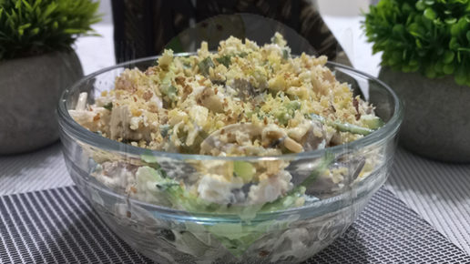 Вкусный и необычный слоеный салат с курицей на праздничный стол