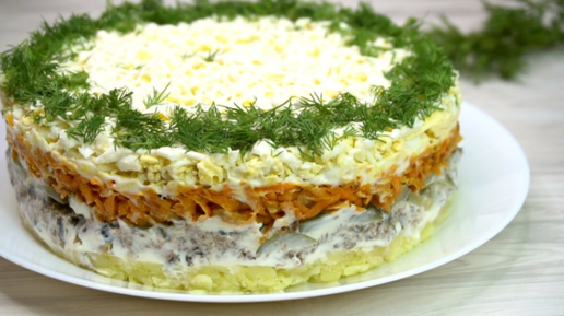Слоеный салат со шпротами к Новому году: готовится за 30 минут, а восхищает до конца праздника.