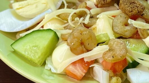Приветствую вас, дорогие читатели❤️! Иногда хочется побаловать себя чем-то необычным и вкусным. Салат "Цезарь" для многих считается невероятно крутым, хотя он достаточно прост в приготовлении. Сегодня я вам это докажу, правда классический рецепт немного изменю. Ингредиенты: ✔️Креветки - 250г ✔️Помидор - 2шт ✔️Огурец - 1шт ✔️Листья салата - 5шт ✔️Сыр твердый - 200г ✔️Яйца куриные - 3шт ✔️Сухарики - 100г ✔️Растительное масло - 50мл ✔️Соус "цезарь" - 200мл ✔️Соль, перец, специи - по вкусу Процесс приготовления:...
