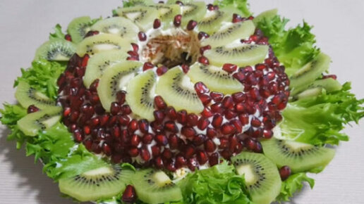 Новогодний салат "Девичий каприз" с черносливом, киви и гранатом