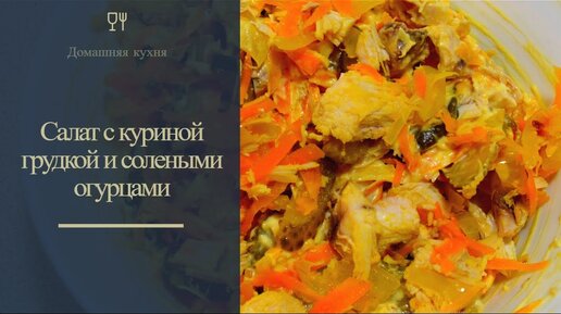 Сытный салат на новогодний стол с куриной грудкой и солеными огурцами🥗 Очень простой и вкусный салат, который не стыдно поставить на новогодний стол. Можно есть как теплым так и холодным. Минимум ингредиентов и потраченного времени. Ингредиенты и граммовки: Куриную грудку отварить в кастрюльке до готовности. Готовую куриную грудку вынуть из кастрюли и положить на тарелку остывать. На плите на среднем огне разогреваем сковороду, добавляем в нее 2-3 ст.л. растительного масла. Соленые огурцы, лук и морковь режем на полукольца...