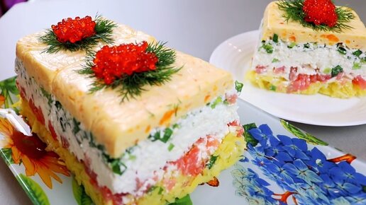 Вашему вниманию предлагаем замечательный авторский салат, который подойдет к любому праздничному столу, особенно новогоднему. Он достаточно простой, слоеный, с красной рыбой. При этом очень вкусный и легко делается. Мы не первый раз используем желатин в салатах, это потрясающий способ для того, чтобы салат держал нужную форму. При этом он совсем не чувствуется. Нам понадобится: Картофель и яйца отвариваем заранее. Шаг 1. В 100 г воды добавляем столовую ложку желатина, размешиваем и оставляем набухать...