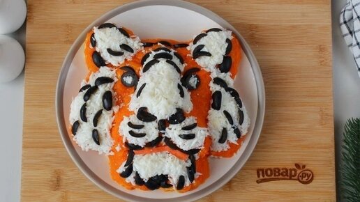 Новогодний салат "Тигр" на 2022 год очень вкусно и красиво. Праздничный Салат