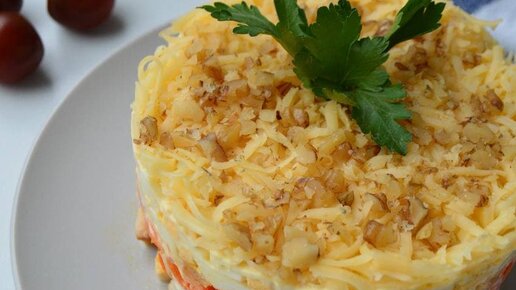 Ещё один вариант салата, над которым не нужно долго заморачиваться, но который получается ооочень вкусным. ИНГРЕДИЕНТЫ: 📝 250 грамм копченой/отварной/обжаренной куриной грудки, 3 вареных яйца, 1 апельсин или 2 мандарина, 100 грамм морковь по-корейски, 50 грамм сыра, майонез ~ 70-80 грамм, 10 грамм грецких орехов на украшение. Готовим: 1. Курицу нарезать кубиками, выложить первым слоем, смазать майонезом (~1,5 столовые ложки) 2. Следующий слой морковь по-корейски. 3. С апельсина срезать корку вместе с пленкой и нарезать на кубики...