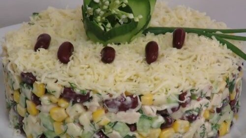 Праздничный салат из красной фасоли с курицей и кукурузой